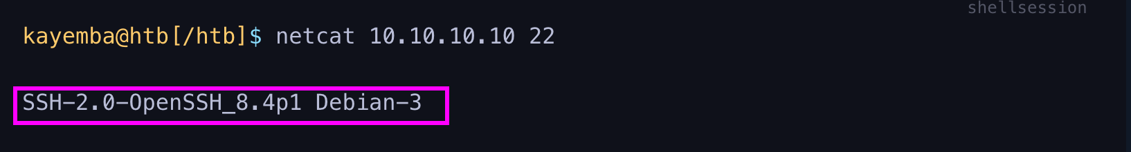 As we can see, port 22 sent us its banner, stating that `SSH` is running on it. This technique is called `Banner Grabbing`, and can help identify what service is running on a particular port. `Netcat` comes pre-installed in most Linux distributions.&#x20;